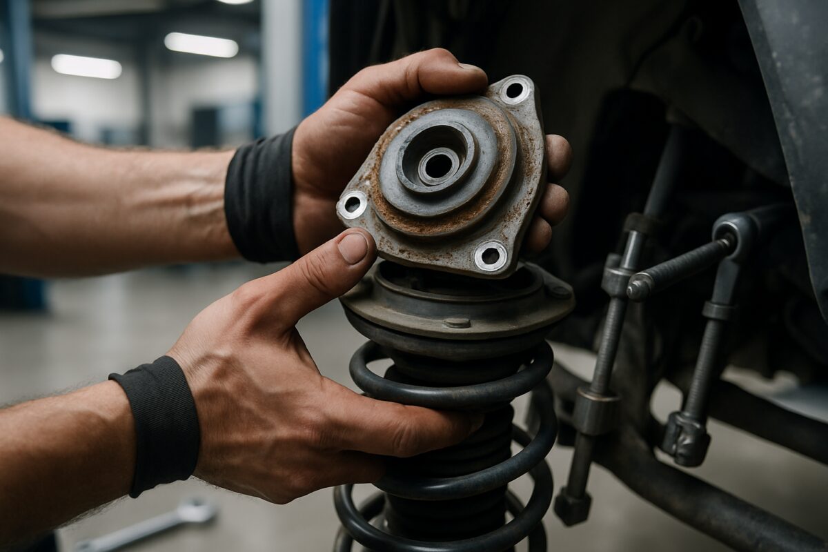 Safety reminder: Never attempt strut bearing replacement without proper spring compression tools. Compressed suspension springs store enormous energy and can cause serious injury if handled incorrectly.