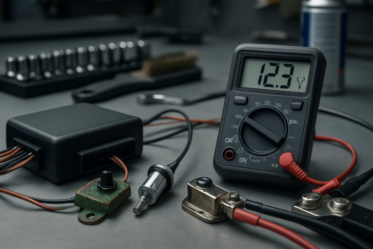 Start with the battery, as voltage issues cause approximately 40% of false alarms. Use a digital multimeter to measure voltage across the terminals. A healthy battery should read 12.6 volts or higher when the engine is off. Anything below 12.4 volts indicates a weak battery that may trigger alarms.